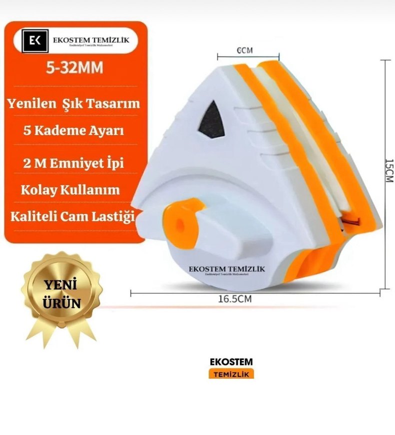 5-32mm ayarlanabilir cam temizleyici, emniyet ipi ve lastik tutma yerine sahip turuncu aparat. 16.5 cm boyunda, kolay temizleme sağlar.