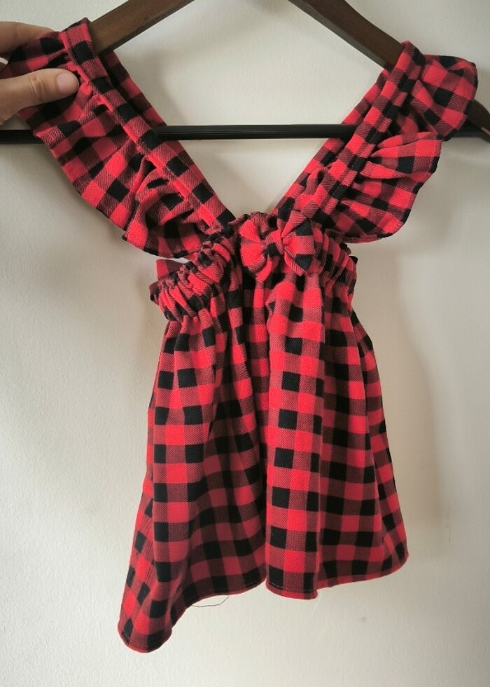 Askısı ayarlanabilir. Kırmızı siyah pötikareli, askılı etek. Çok şık duruyor. 23 Nisan'da kullanılabilir. 2-3 yaşa uygun.