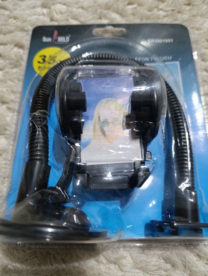 Ayarlanabilir kelepçeli ve esnek kollu telefon tutucu, kolay montaj için vantuz tabanına sahiptir.