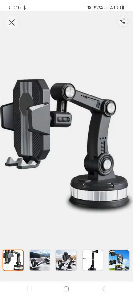 Esnek kollu ve vantuz tabanlı ayarlanabilir siyah ve gri telefon tutucu.