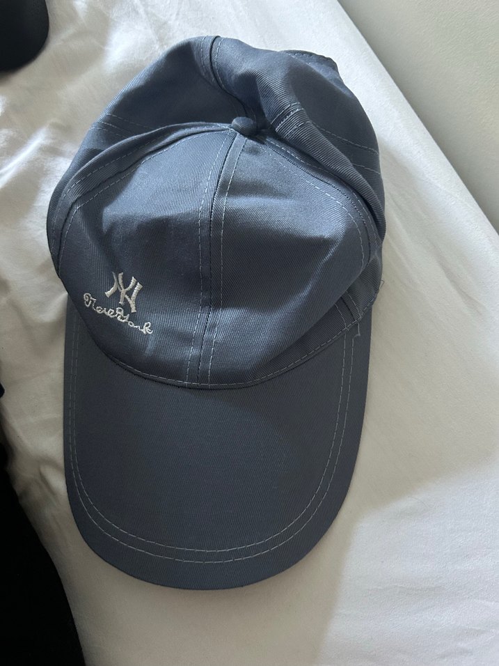 Parlak gri sentetik kumaştan yapılmış, ayarlanabilir tokalı ve küçük nakışlı logolu spor şapka. ORİJİNAL DEĞİLDİR.