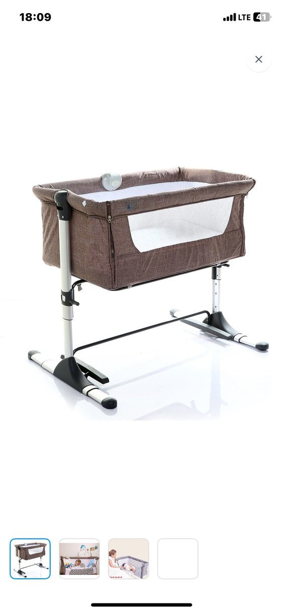 Kahverengi bebek beşiği, nefes alabilirlik sağlayan file yanları ve ayarlanabilir yükseklik özelliği ile donatılmıştır. Gri metal ayakları sağlam durur. ️
