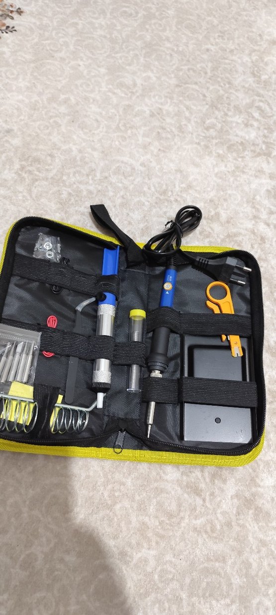 60W ayarlı havya seti. Hediye geldi hiç kullanılmadı. 60w ayarlı havya Lehim pompası Lehim Teli Havya standı Keçe Yedek uçlar Cımbız Kısa tamir kabloları.