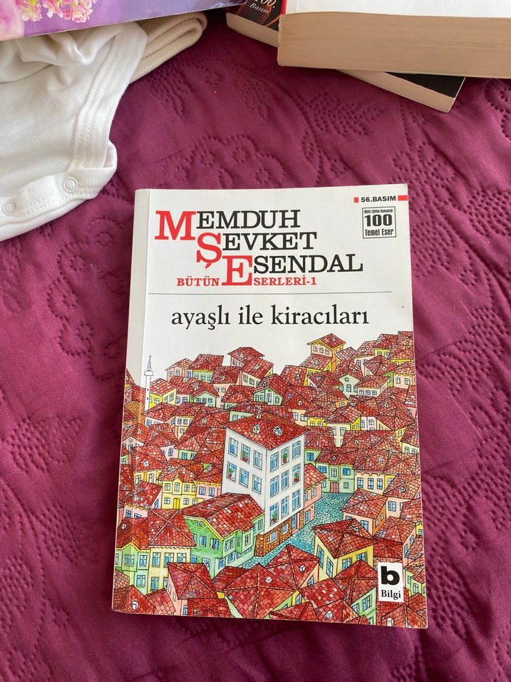 Memduh Şevket Esendal'ın "Ayaslı ile Kiracıları" adlı romanı, yazarın bütün eserleri serisinin bir parçasıdır. Kapakta renkli ev çizimleri yer almaktadır.