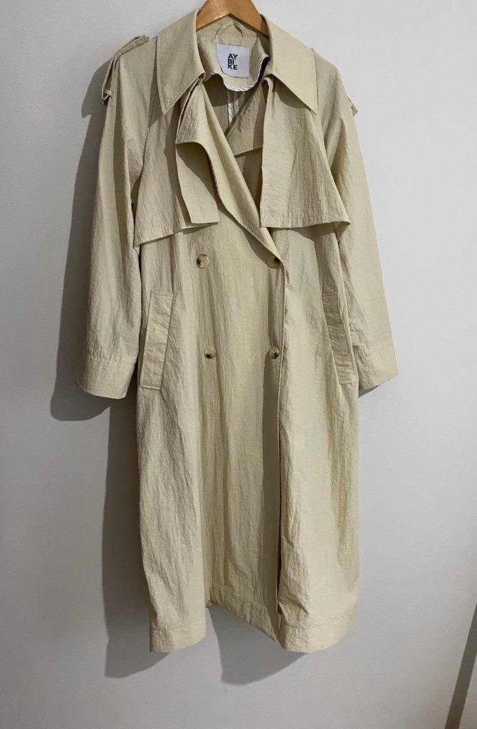 Aybike Stil krem rennkli astarsiz oversize trenckot Boyu 120 cm İki kol altı arası 67 cm