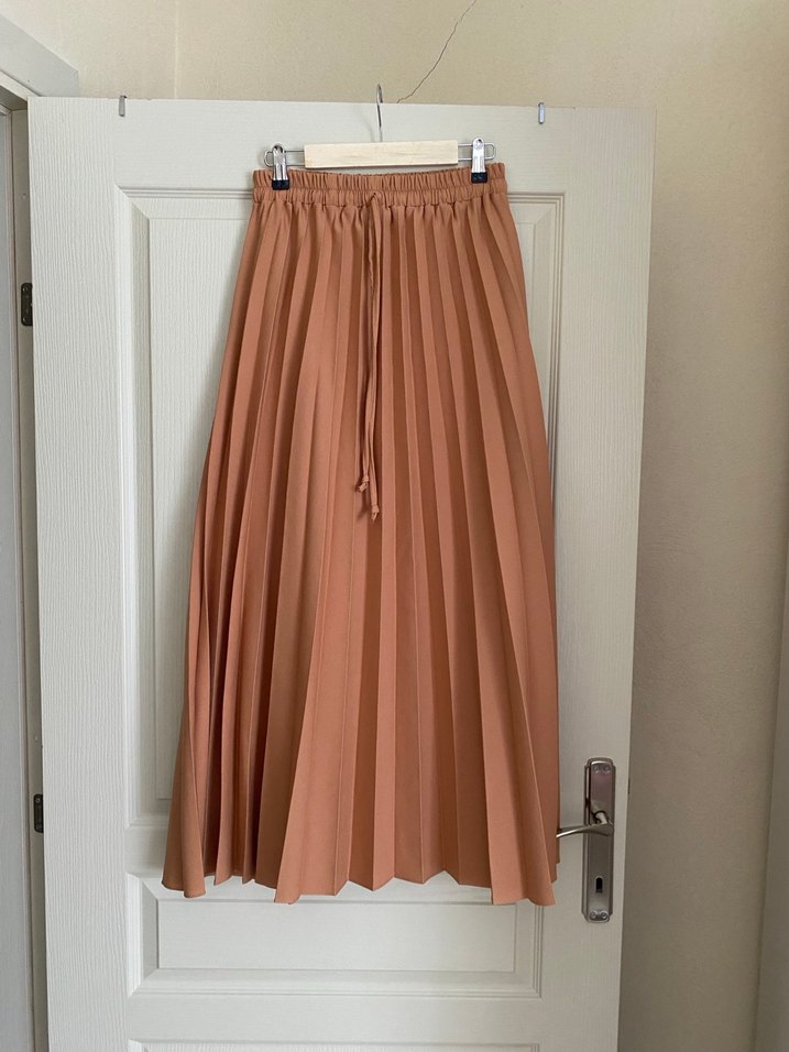 Ürünü birkaç kez kullandım tertemizdir çok kaliteli bir pilisesi ve kumaşı var 95 cm boyunda 36/38 beden uyumlu