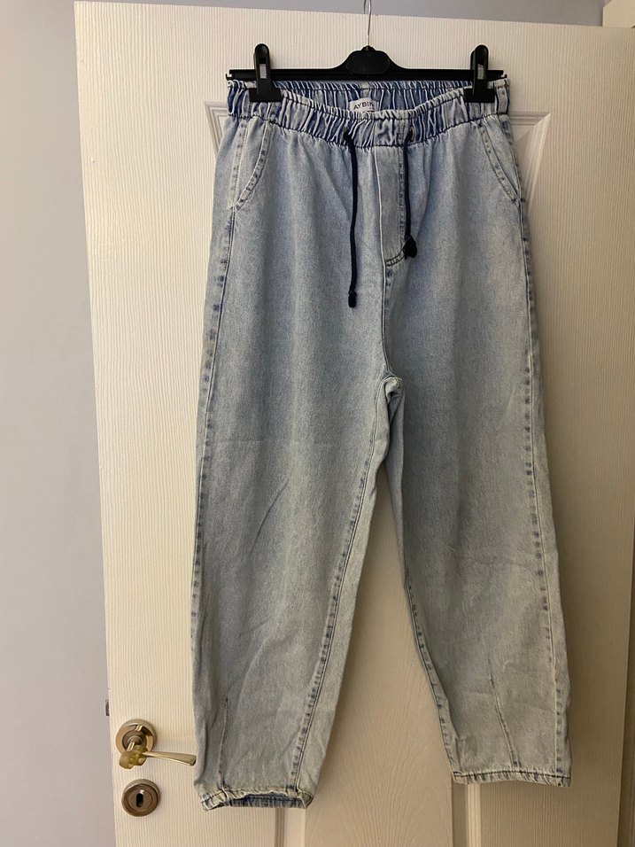 Aybikestil slouchy hean Kadın Gri Mavi Bol Kesim Kot Pantolon