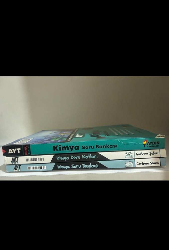 Aydın markalı AYT Kimya soru bankası ve Görkem Şahin imzalı ders notları seti, sınav hazırlığı için uygundur.
