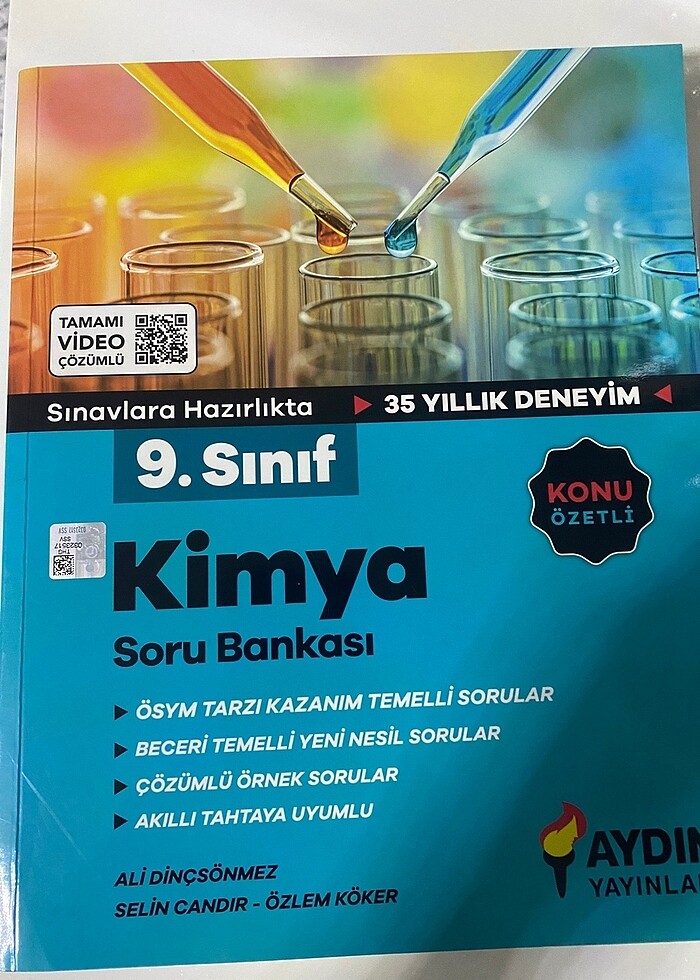 Aydın yayınları 9 sınıf kimya soru bankası sıfırdır