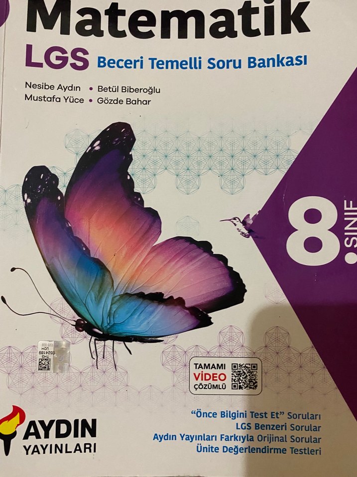 Aydın Yayınları'nın 8. sınıf LGS matematik soru bankası, orijinal ve beceri temelli sorular ile video çözümleri içeriyor .