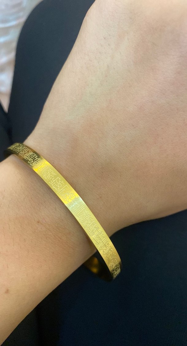 Parlak altın renkli, ayetel kürsi ve bilezik, minimalist ve çağdaş tasarımla günlük kullanıma uygundur. Paslanmaz ve kararma yapmaz paketli üründür.(fiyat bilgisi için yazınız)