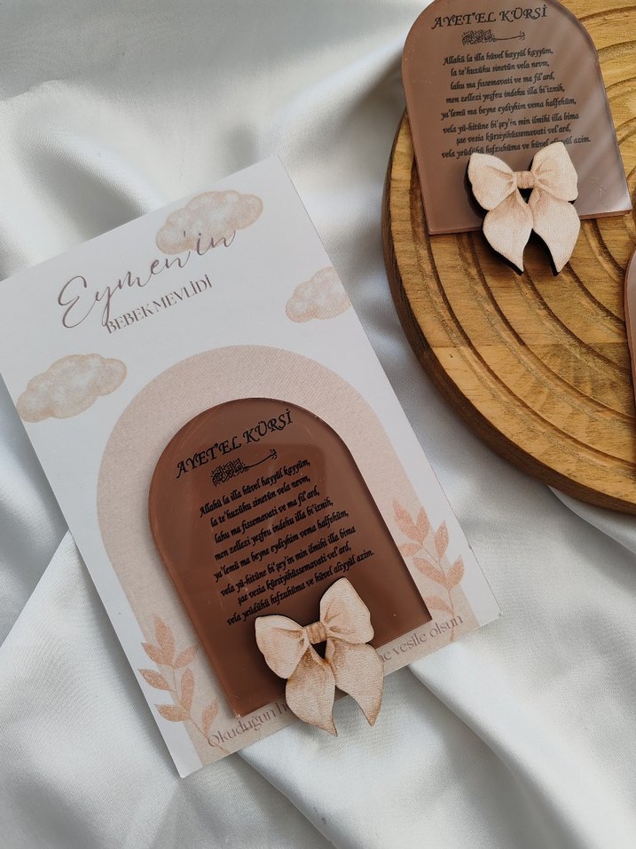 Bej renkli, pastel fiyonk detaylı ve baskılı desene sahip Magnet. Kartlı ve jelatinli gönderim yapılmaktadır