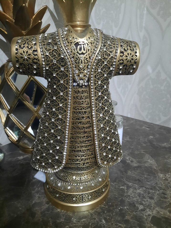 Hiçbir defosu yok. Parlak altın renkli, detaylı desenlere ve süslü taşlara sahip geleneksel elbise figürü. ✨