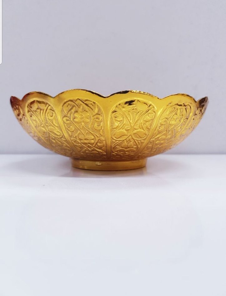 Parlak altın renkli bu tabak, dekoratif kullanım için uygundur. Ayetli metal büyük boy kase, hurmalık yada aksesuar olarak kullanılabilir..Makinada yıkanmaz, nemli bir bezle temizlemeniz gerekir. 13x3 cm. Adet fiyati. MAGAZAMIZDA 2. EL SATIŞI YOKTUR.GÖNDERİLEN ÜRÜNLER SIFIR OLUP, İLK KULLANAN SİZ OLACAKSINIZ.✔