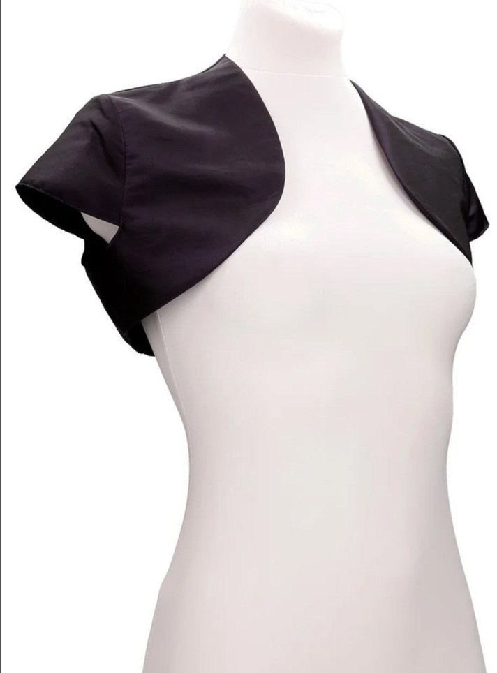 Ayhan giyim, siyah, straplez yakalı, drapeli ve fitted kesim saten kumaştan yapılmış kolsuz bolero. Resmi etkinliklerde ve özel günlerinizde kurtarıcı bir parça. Beden:XL -42 İki koltuk arası gögüs ölçüsü:45 cm Omuz hizası ile etek ucu uzunluk:27 cm #ayhan #straplez #saten #bolero #palto #pardesü #kap #trençkot #mont #ceket #ferace #tesettür #şık #zarif #davet #günlük #sonbahar #kış #mevsim #moda #kadın #giyim