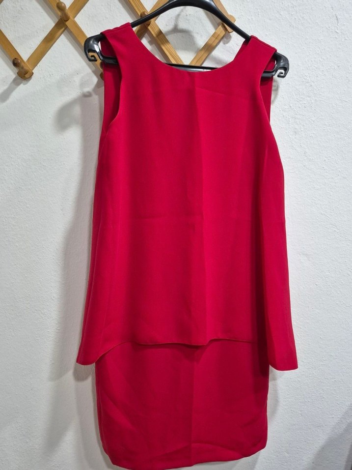 Kırmızı, askısız, kolsuz günlük elbise.Temiz kullanılmıştır. Rengi hâlâ canlıdır.