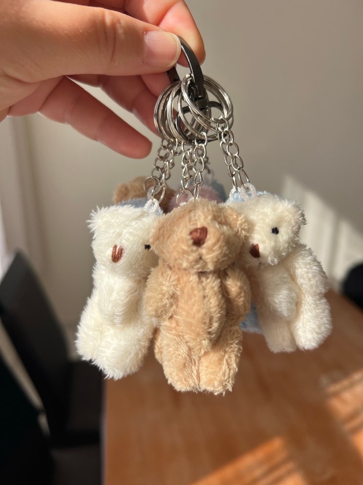 Püsküllü, yumuşak pastel bej peluş ayıcık anahtarlıklar, rahat ve bohem sokak tarzına uygundur. 9 adettir