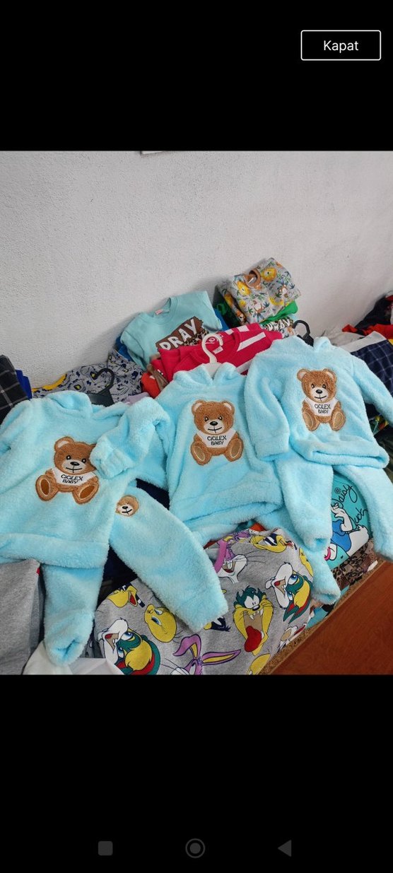 Yumuşak mavi kadife kumaştan, sevimli ayıcık baskılı çocuk pijama takımları. Renkli desenleri ile sıcak ve rahat geceler için ideal.
