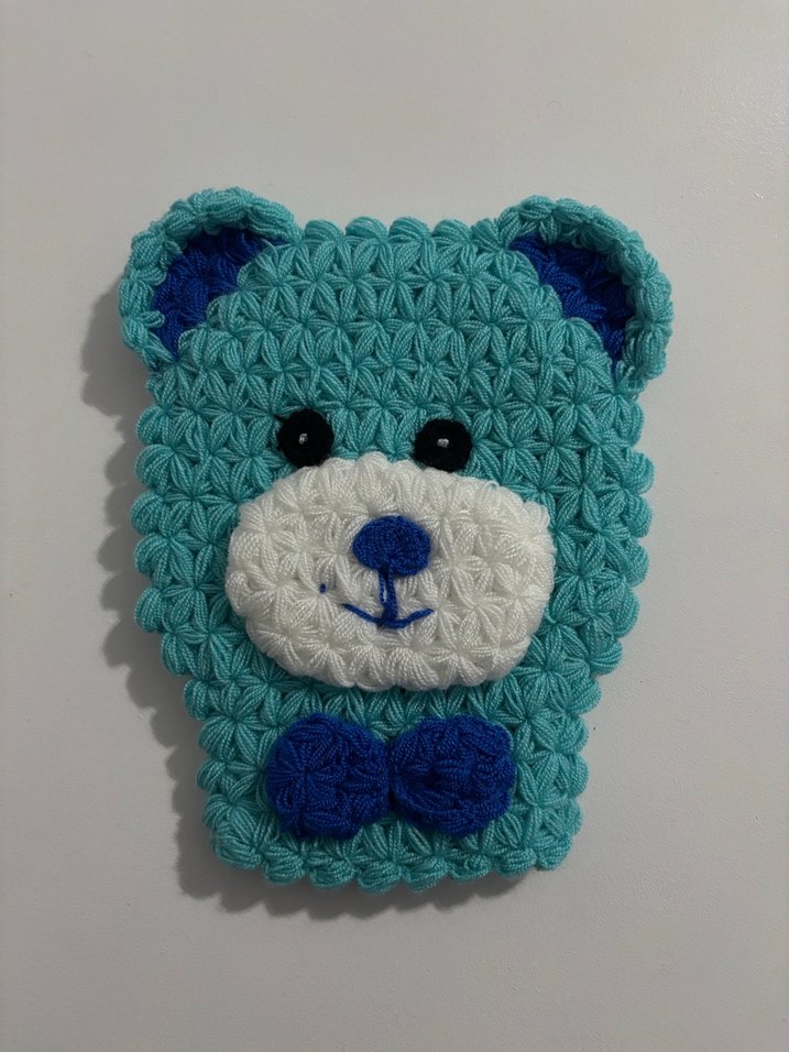 Turkuaz renkli, ayıcık şeklinde detaylı işleme banyo süngeri. Yumuşak dokusu ile nazik temizlik sağlar. Ayıcık el yapımı lif modeli çeyizlik