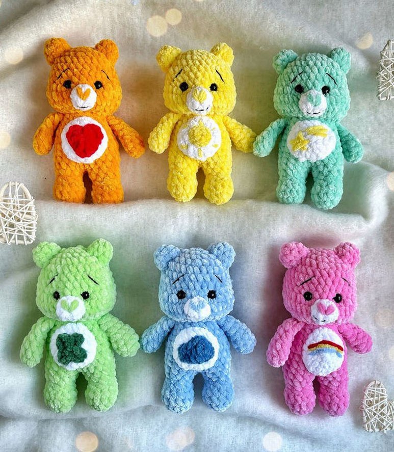 Yumuşak dokulu, renkli peluş ayıcık seti. Her birinin karnında farklı sevimli semboller bulunur. Sarılmak ve dekorasyon için uygundur. tane fiyatı 250 TL dir 6tane alırsanız 1000TL