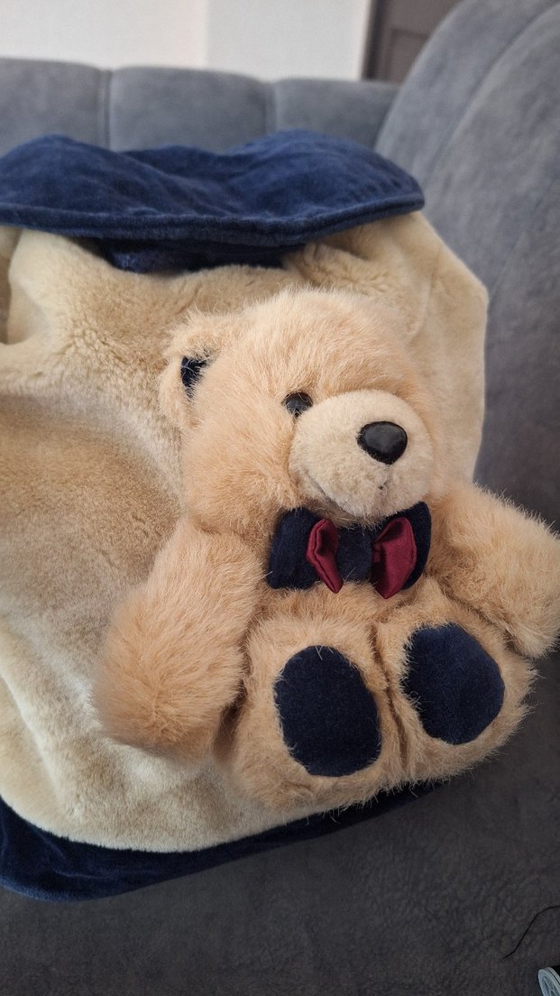 Yumuşacık, önünde pelus ayıcık ayrıntısıyla geniş ve omuz uzunluğu ayarlanabilir çanta. çantamız çok olduğu için sayılı kullandık. kullanima engel bir kusuru yoktur. agiz kısmı baglamali üzeri cirtlidir. Ayıcık sabittir. göründüğü gibi temiz ve yumus bir ürün