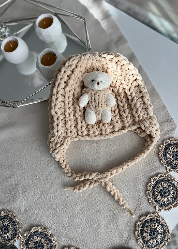 Ayıcıklı puffy çocuk şapkası
