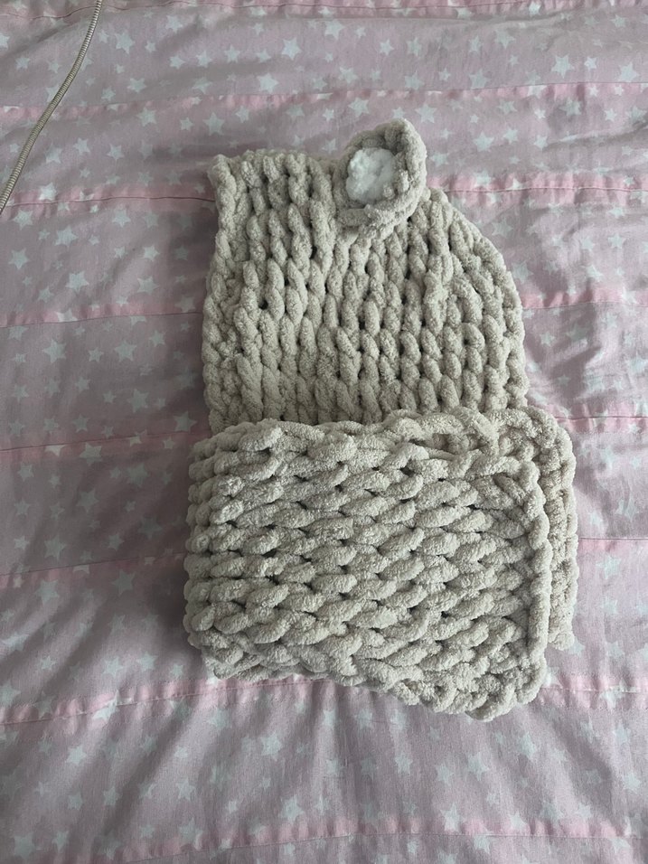 Bej renkli, yumuşak ve sıcak , kalın örgü deseniyle. rahattır. Bu ilanı direkt alabilirsiniz fotoğraftaki gelecek