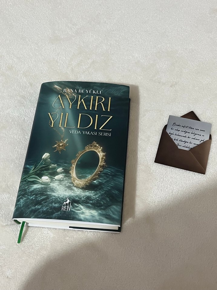 Veda Yakası serisinden "Aykırı Yıldız" romanı, beyaz çiçekler ve altın renkli çerçeve gibi sembolik detaylar içeren etkileyici bir kapakla sunuluyor.