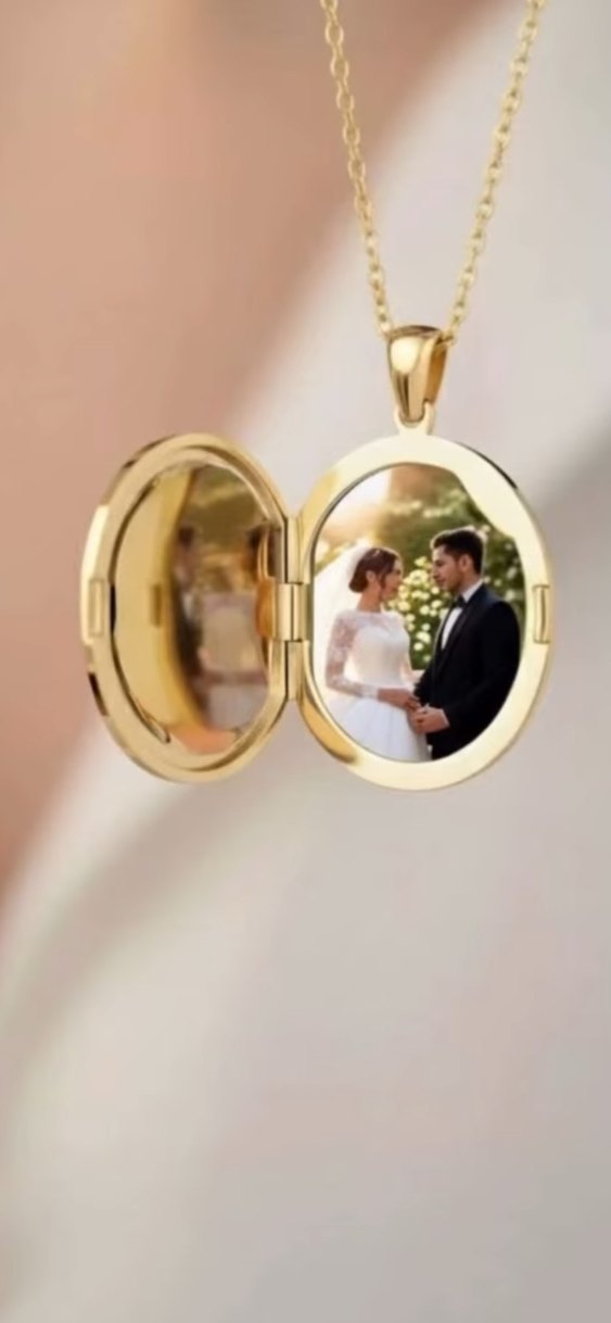 Çelik gold ayna kolye içersine fotoğraf koyabilirsiniz