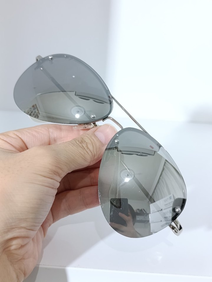 Kadınlar için şeffaf gri camlı, minimalist ve çağdaş tasarıma sahip sade güneş gözlüğü. ️