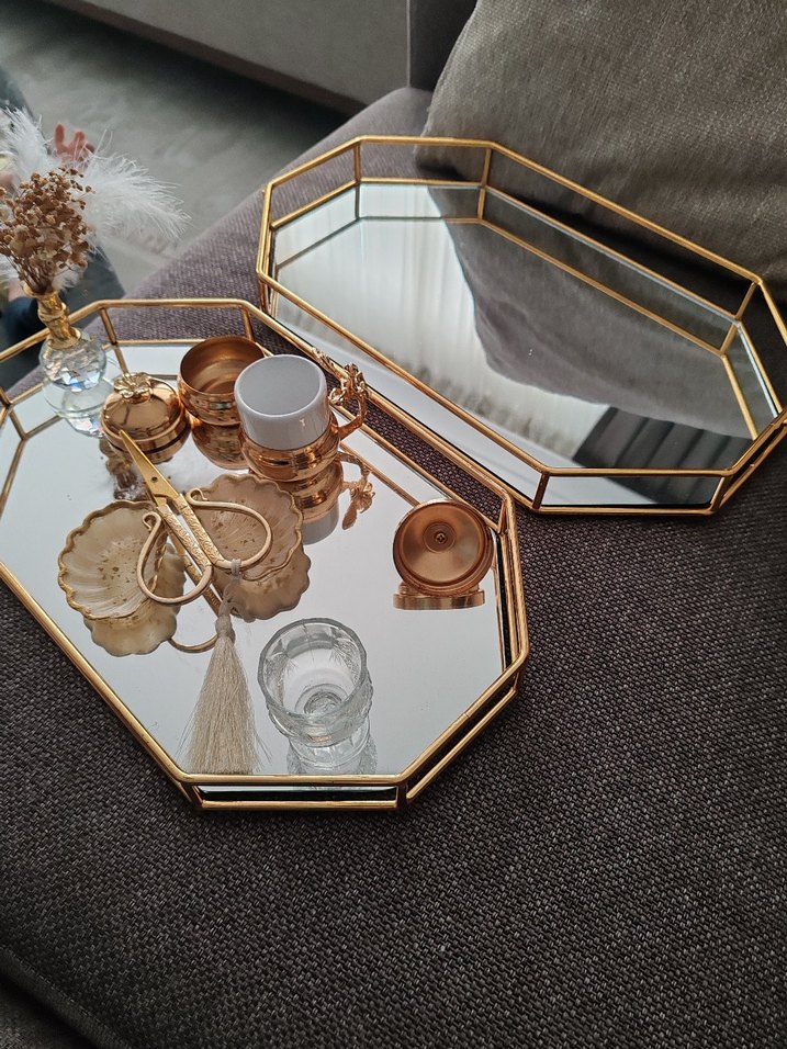 Aynalı kahve yüzüklük makas nişan tepsisi