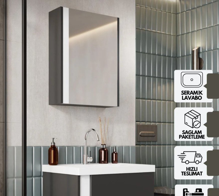 AYNALI LAVABO ÜSTÜ DOLAP MDF KURULU HALDE TESLİM EDİLİR 60 X 40 ÖLÇÜLERDE