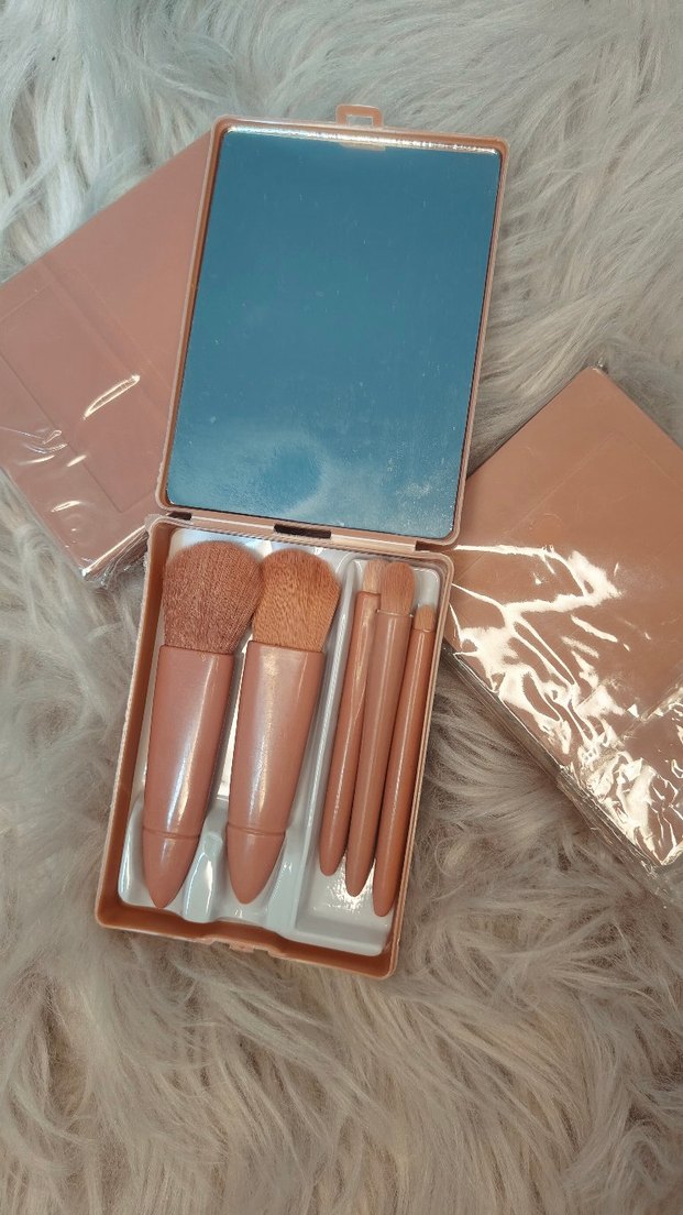 5 Fırçalı, iki büyük ve üç küçük fırça, aynalı kompakt kutuda yer alır. ️