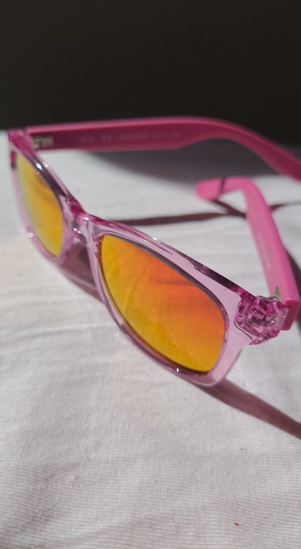 Atasun optik Inesta marka. Aynalı pembe çerçeveli, renkli yansıtıcı lenslere sahip çocuk güneş gözlüğü, minimalist ve eğlenceli tarzı yansıtır. görseldeki gibi. Kutusu hediyedir.