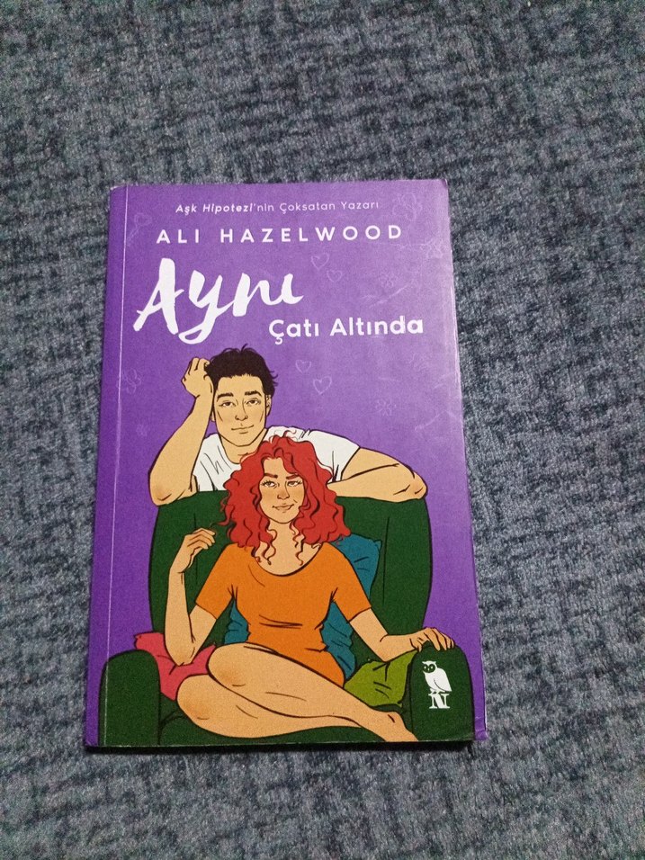 AYRAÇLI ,TERTEMİZ Ali Hazelwood'un 'Aynı Çatı Altında' adlı romanı, kapakta birlikte oturan bir adam ve kadın çizimiyle. 'Aşk Hipotezi' yazarıdır.