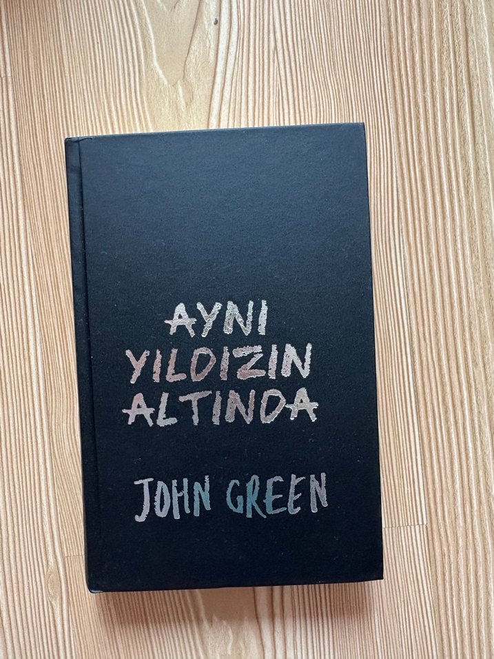 John Green'in 'Aynı Yıldızın Altında' adlı romanı, renkli yazılı sade siyah kapak ile sunuluyor.