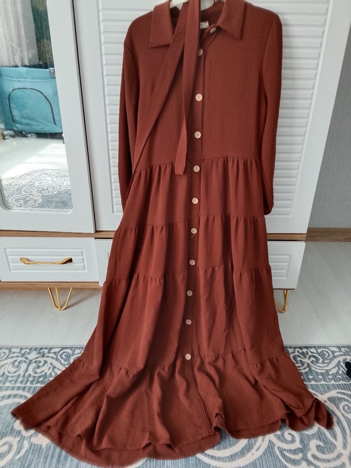 ayrobin kumaş elbise çok güzel ve rahat kolları düğmeydi ben lastik yaptırdım belden aşağı doğruda diktirdim açıktı düğmeli olduğu için
