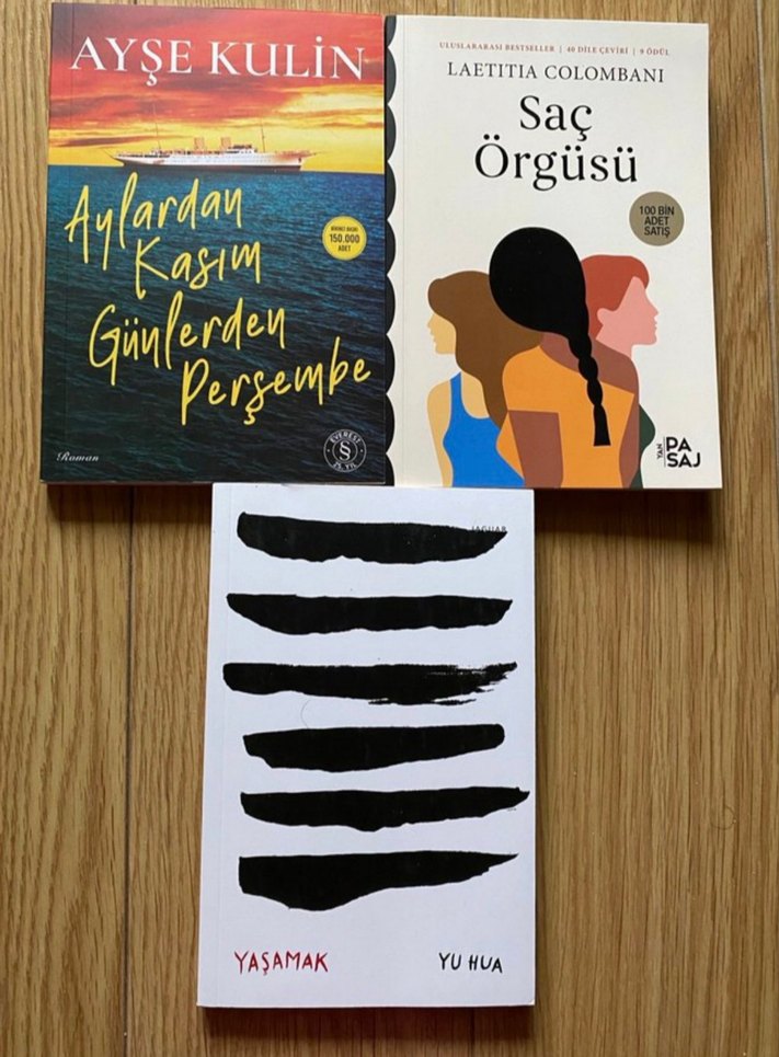 Ayş Kulîn'in "Aylardan Kasım Günlerden Perşembe," Laetitia Colombani'nin "Saç Örgüsü" ve Yu Hua'nın "Yaşamak" adlı romanları yer alıyor. Her biri farklı kapak tasarımı ve hikaye anlatımı içeriyor.