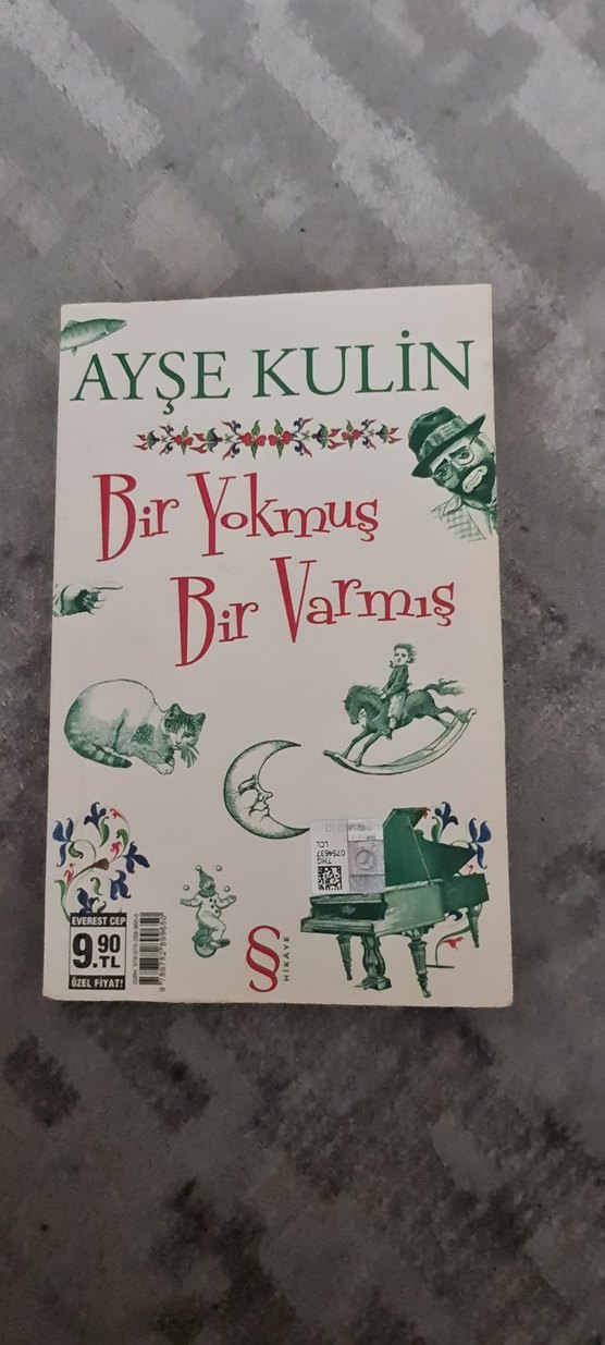 Ayşe Kulin'in "Bir Yokmuş Bir Varmış" kitabı, kapağında piyano, ay, kedi ve sallanan at çizimleriyle klasik bir hikaye temasına sahiptir.