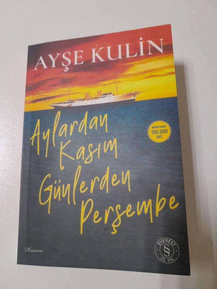 Ayşe Kulin'in "Aylardan Kasım Günlerden Perşembe" romanı, gün batımında bir gemi görseliyle dikkat çekiyor.