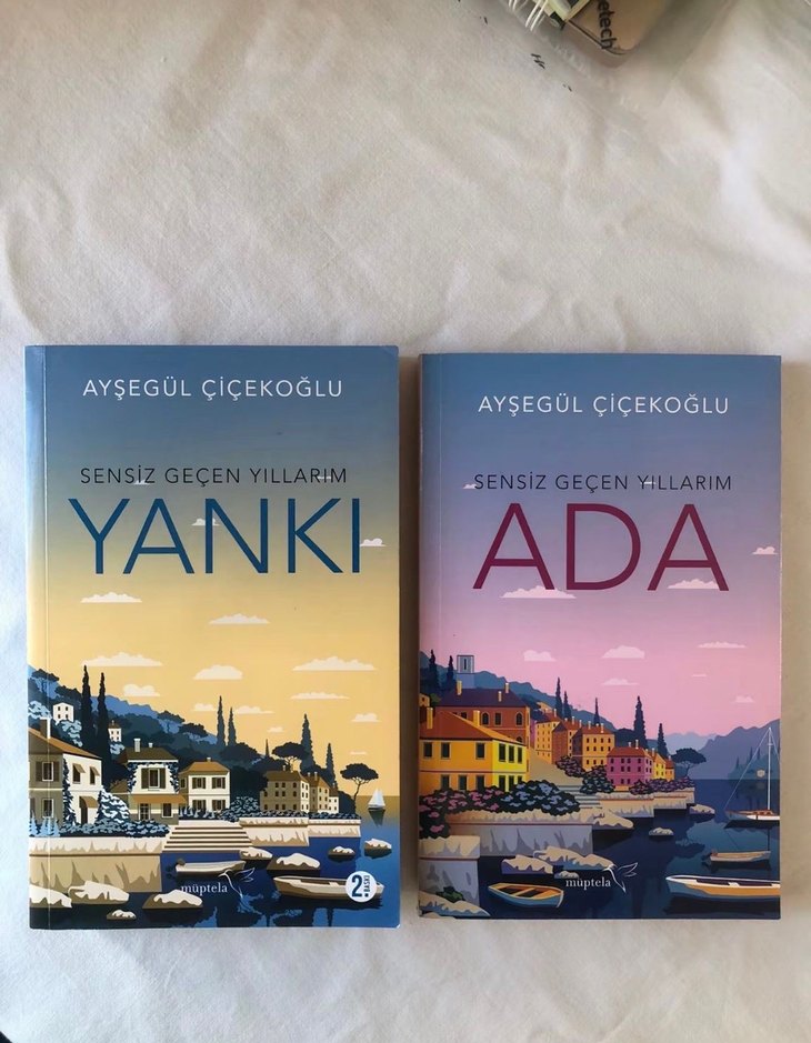 Ayşegül Çiçekoğlu'nun 'Sensiz Geçen Yıllarım' serisinden 'YANKI' ve 'ADA' adlı iki roman. Sahil manzaralı kapaklarla.