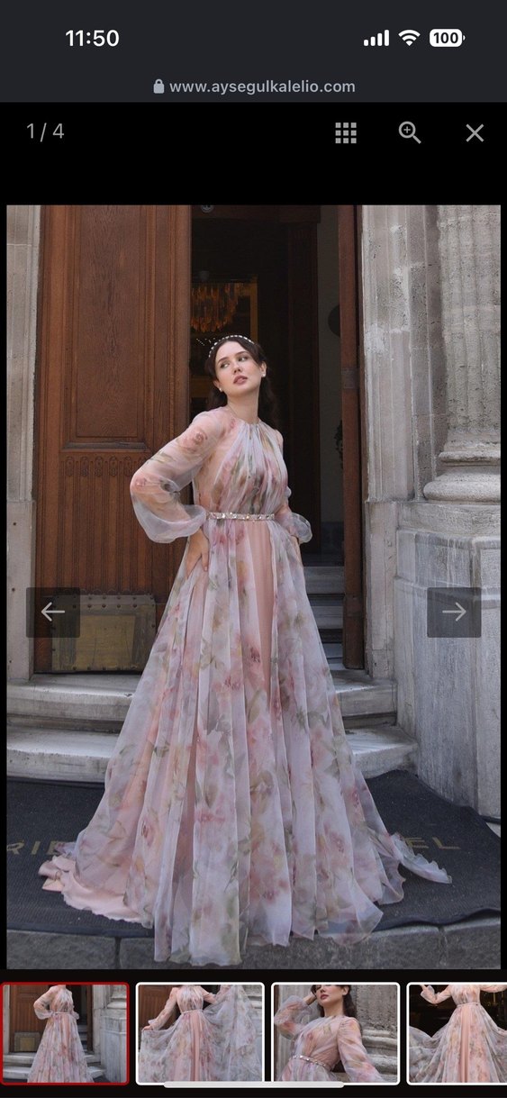 Ayşegül Kalelio Pembe Çiçek Desenli Uzun Bohem Gelinlik