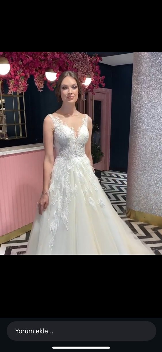 Düğünüm kır düğünü olduğu için alt kısmı kirli fakat başka hiçbir yerinde leke vs bişey yok kuru temizleme ile halledilebilecek bir şey, ben temiz dahi olsa kuru temizleme yapılmasını önerdiğim için iki kez yıpranmasını istemediğimden yıkatmadım. Ön kısmı bana çok açık geldiği için astar tarzı bişey diktirdim ama terzi sadece tutturdu yani istenildiği zaman çıkarttırılabilir. Bir tane uzun duvağı, aysira kılıfı, tarlatan mevcut. Ankara içi elden teslim daha mantıklı olur.
