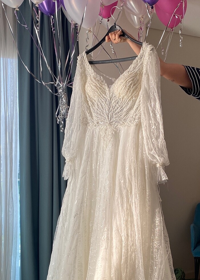 Aysira gelinlik bir kere giyildi kuru temizle yaptırdım. Duvak hediye gönderilecek. Uzun tül duvaktır aysira markasına aittir. Yırtık hasar yoktur. 42 beden olarak hiçbir tadilatı yoktur. Çok şans getirdi alana şans getirir umarım