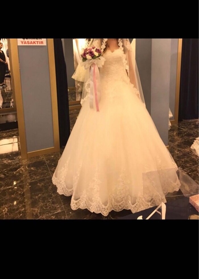 Aysira marka Arkası kuyruklu kuyruk kısmı dantelli bir gelinliktir sadece bir kere düğünde giyildi sonrasında kuru temizlemede temizlendi sırt omuz kısmı tüldür görselde gözüktüğü gibi herhangi bir sıkıntısı yoktur çiçek ve duvaksız satılacaktır.üst bedeni 40 alt bedeni 36-38 aralığında daraltılmıştır.isterseniz üzerinize göre daraltma yapabilirsiniz üst kısımdan beyaz rengi seçtim fakat renk çiğ beyaz değildir