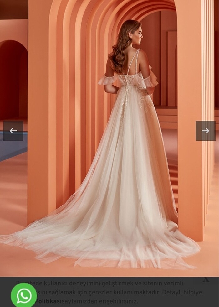 Duvak ve tarlatan içinde dahil.Aysirada güncel fiyatı 56bin Dantel işlemeli askılı düşük kol fırfır detaylı bedenden tül çıkışlı (krem rengi)