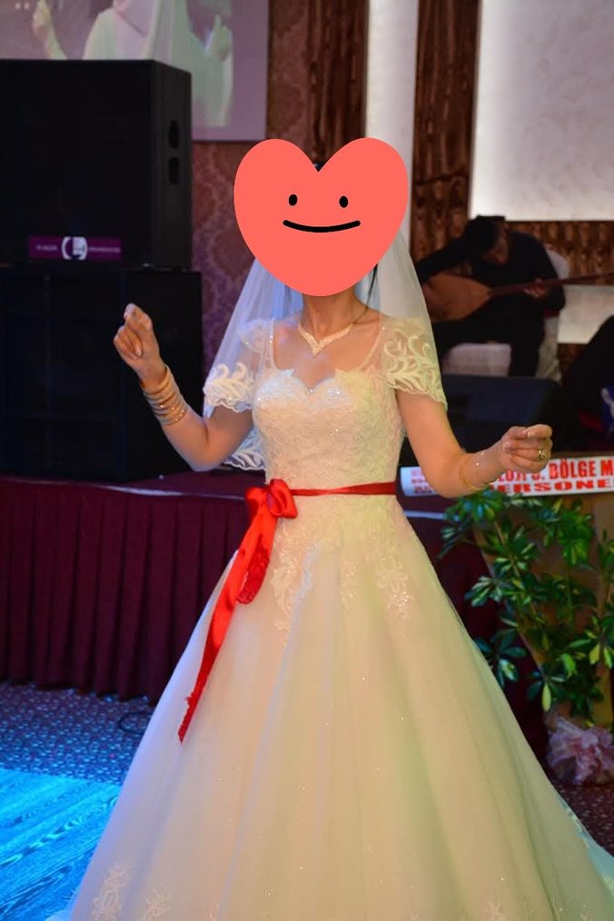 straplez ve askılı kollara sahip A kesim gelinlik, 38 Beden uyumlu, vücuda oturan klasik ve avangart tarzda gelinlik. Sıfır alındı, Sadece 5 saat kullanıldı. Dış görünümde leke defo yoktur sadece iç astar kumaşında kuru temizleme ile giderilebilecek ufak tefek leke mevcuttur. Arkası uzun kuyruklu modeldir. Arkası içten ipli, fermuarlı ve inci düğmelidir. Duvak hediye olarak gönderilecektir.