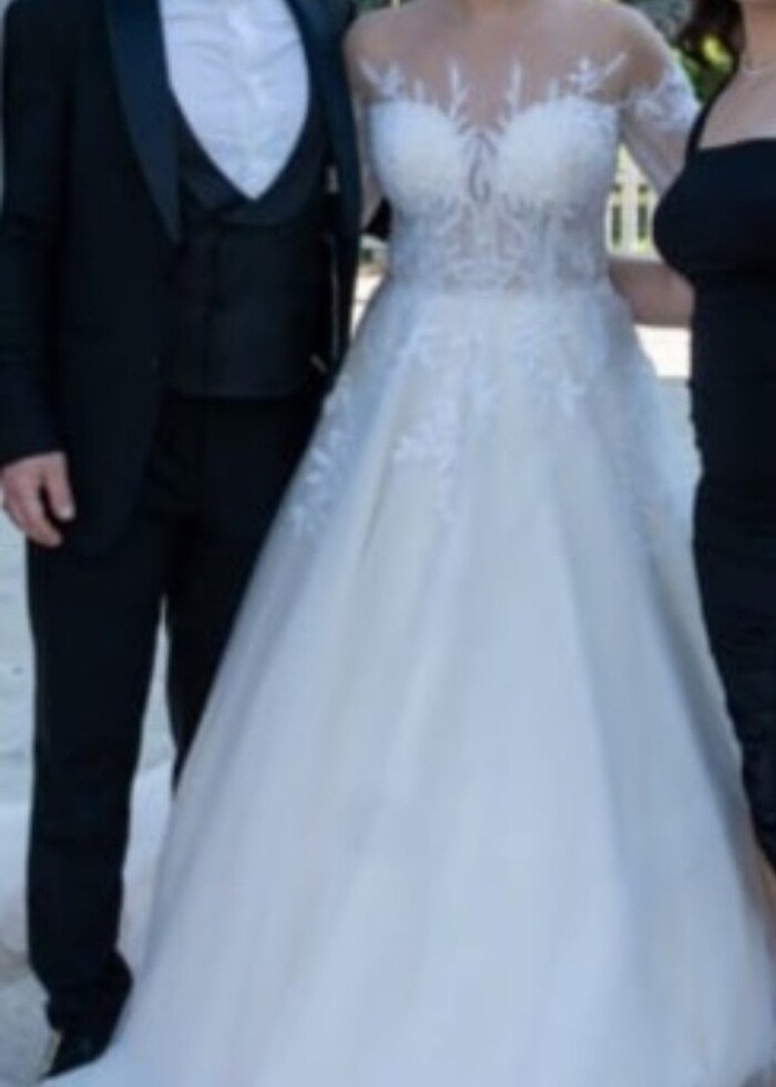 Sadece nikahta kullanıldı herhangi bir deformasyonu yok temiz L bedendi küçültülmüştür M beden oldu Duvağı ile gönderilecektir