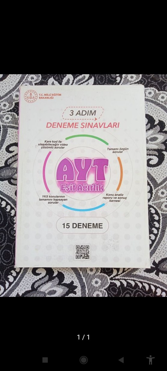 AYT 3 Adım Eşit Ağırlık deneme kitabı, 15 tam deneme, çözümlü sorular ve konu analiz raporları içerir. Arka kapağı yok.