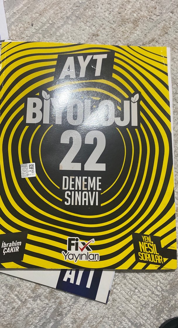 FiX Yayınları tarafından yayımlanan, yeni nesil sorular içeren AYT Biyoloji 22 deneme sınavı kitabı. Bazı yerler çözülü